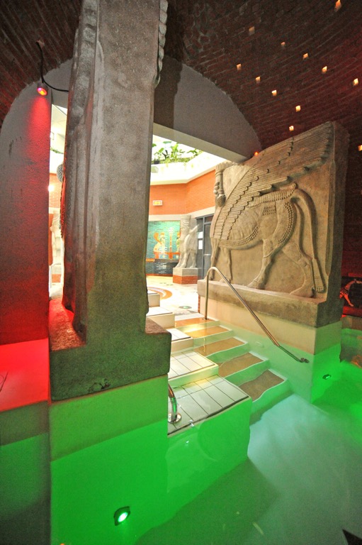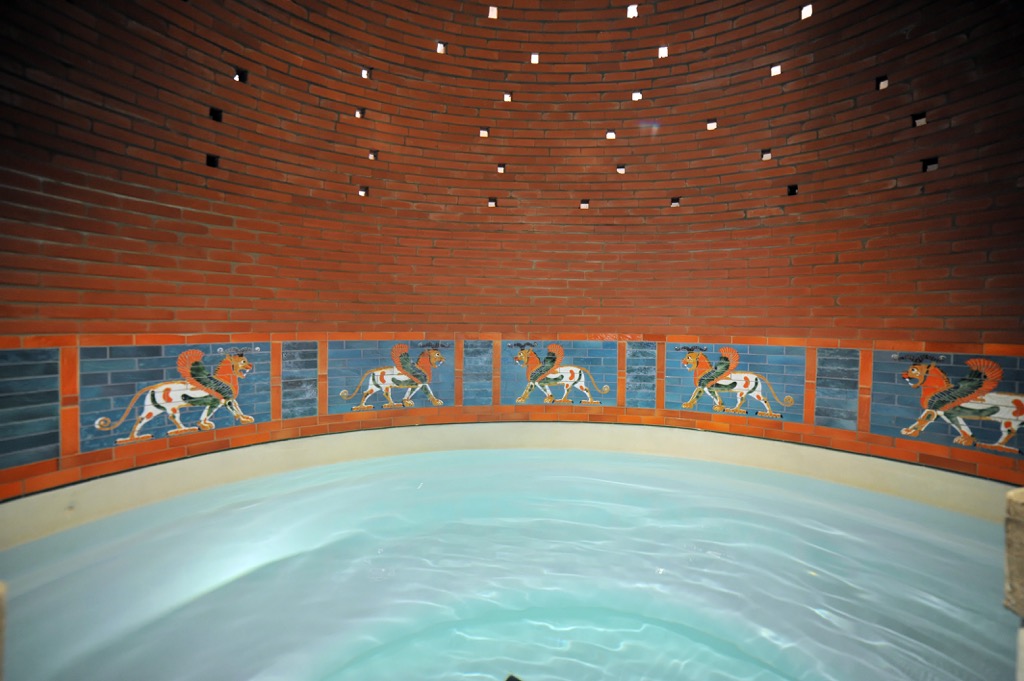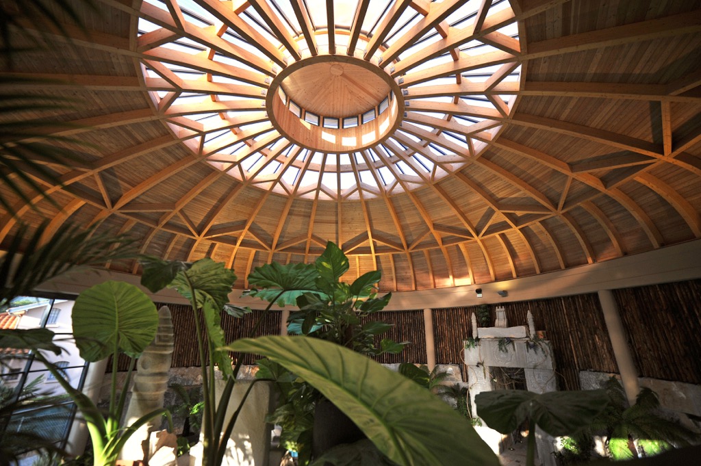 Sous la végétation, des espaces voûtés accueillent l’unique bain turc des Hautes-Pyrénées et son puits froid, un hammam, un bain des senteurs aux huiles essentielles qui évoluent au rythme des saisons et un bain des musiques harmonieusement disposés autour d’un puits froid.